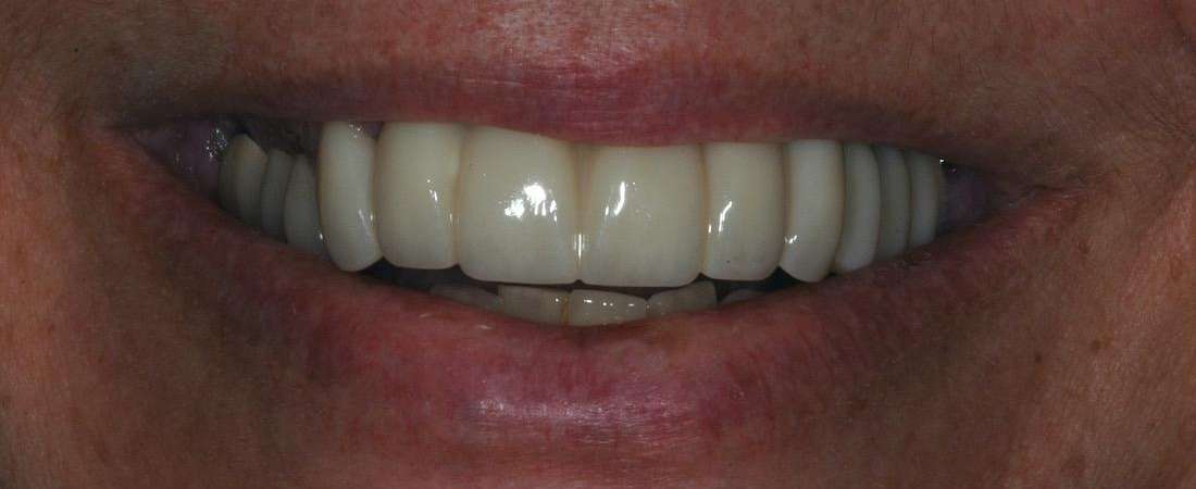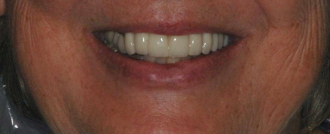 After a car accident 25 years ago cost this woman her front teeth, she was over the moon to get back a permanent solution to her missing teeth that gave her the confidence to smile again and helped eliminate the clicking she had experienced in her jaw for years.