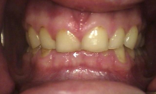 This patient had orthodontics completed incorrectly which led to a severe grinding habit shortened teeth as a result. We had to rebuild his entire mouth, open up his bite and give him proper sized teeth for his face, mouth and smile.